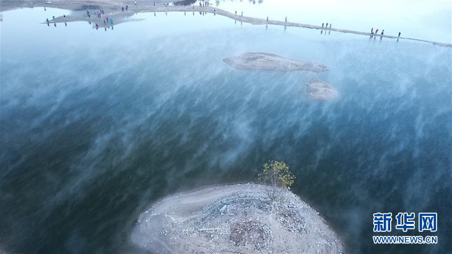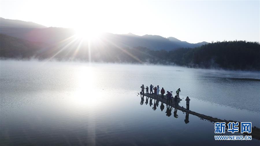 11月14日,游客在奇墅湖边拍摄风光。 初冬时节,安徽省黄山市黟县奇墅湖晨雾缥缈,别具韵味。新华社记者刘军喜摄
