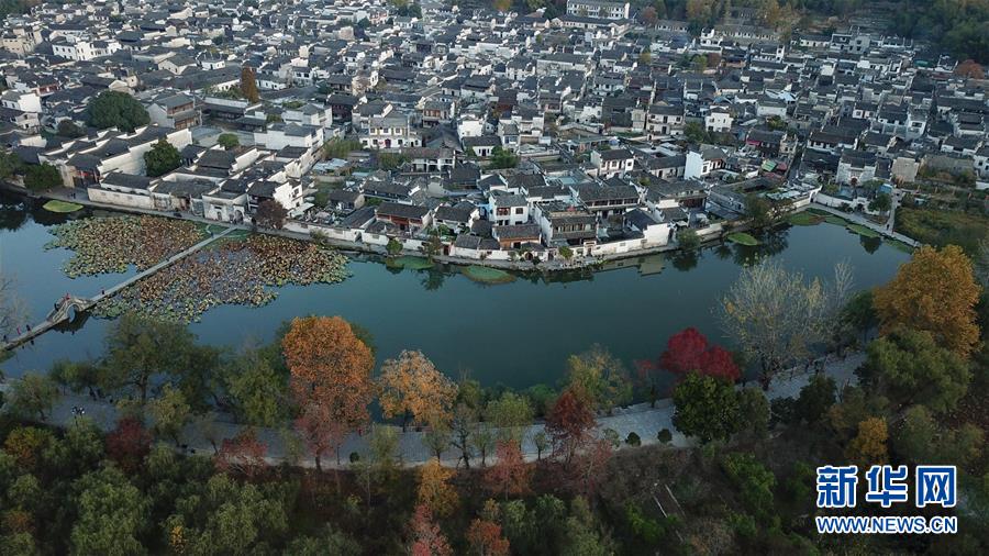 这是11月15日无人机拍摄的安徽黟县宏村风景区附近的村落。新华社记者张端摄