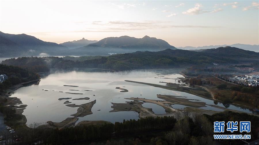 11月14日拍摄的安徽黟县奇墅湖晨景(无人机航拍)。新华社记者张笑宇摄