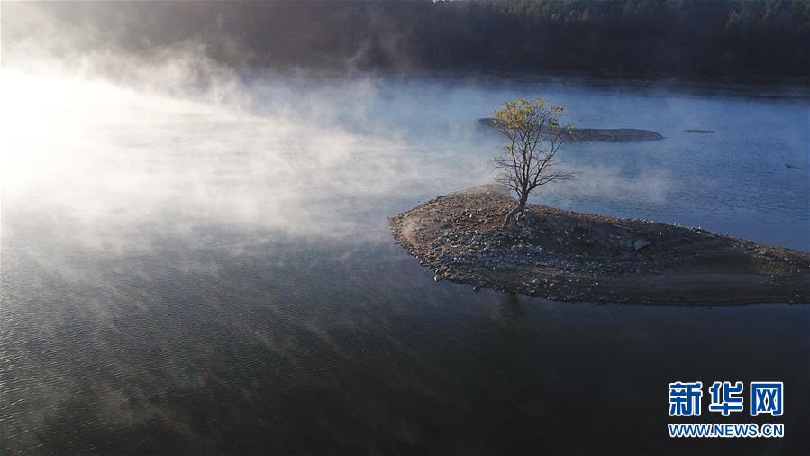 这是11月15日无人机拍摄的安徽黟县奇墅湖晨景。新华社记者张笑宇摄
