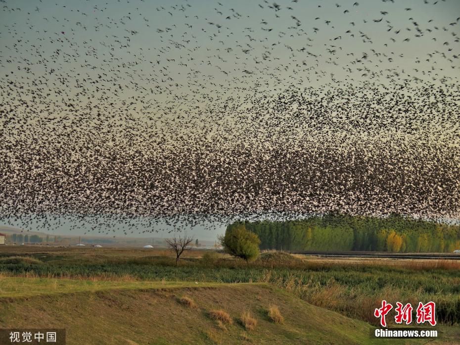 近日,土耳其穆什,椋鸟群迁徙途中,黑压压一片遮挡天空。图片来源:视觉中国