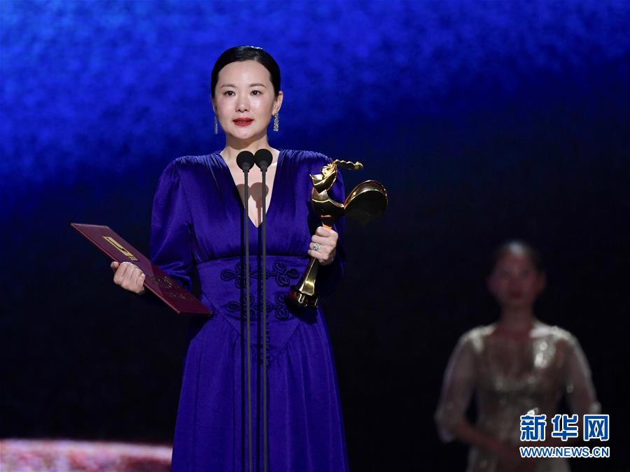 11月23日,电影《地久天长》主演咏梅获得最佳女主角奖。当日,第32届中国电影金鸡奖颁奖典礼在福建厦门举行。新华社记者姜克红摄