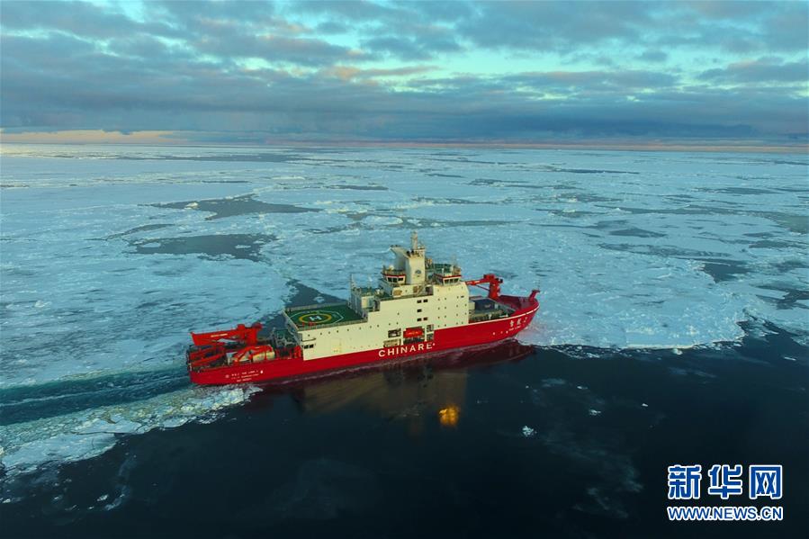 航行在南极圈内浮冰区的“雪龙2”号(11月19日无人机拍摄)。新华社记者刘诗平摄
