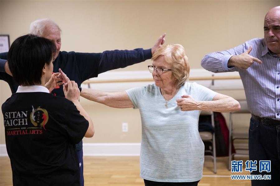 陈思坦的夫人林旭在位于美国纽约长岛的一所社区老年活动中心指导老人练习太极(11月20日摄)。这里是陈思坦夫妇开设的一个公益教学项目。11月的纽约已进入初冬,位于美国纽约长岛的思坦太极武术中心依然一片红火景象,学员们从5岁的孩童到80多岁的老人,操练着太极拳、太极剑、长拳等武术招式。这里的主人陈思坦、林旭夫妇,也从早忙到晚,精心指导每一位学员的一招一式。6岁习武,22岁成为中国全国冠军,26岁获得首个世界冠军……直到30岁退役,陈思坦在运动员生涯中曾获得过32次国内外各类武术大赛冠军。36岁那年,怀着以太极拳和中国武术为媒介向世界推广中国文化的梦想,陈思坦到美国纽约寻找新的舞台。经过十多年的艰苦打拼,陈思坦夫妇目前在纽约长岛、法拉盛和曼哈顿都开设了长期的课程,思坦太极注册在编的各个年龄段的学员近千人,有些“高徒”现在自己也开班授课,将太极推向更多地方。陈思坦夫妇现在思考更多的是如何将太极和武术推广给更多的美国人,并让他们理解其中蕴含的平衡、和谐的中国文化理念。他们创办了纽约太极健身气功活动日,在各类学校和社区开设太极或者武术课程,并利用美国的亚太裔文化月和多元文化节举行武术和太极表演和体验课程,让更多美国人亲眼看到、亲身体会中国武术的魅力。从2011年起,他们还参与创办了纽约太极大赛,如今已举行九届,吸引了美国、加拿大和中国国内的队伍参赛,影响力逐渐扩大。新华社记者王迎摄