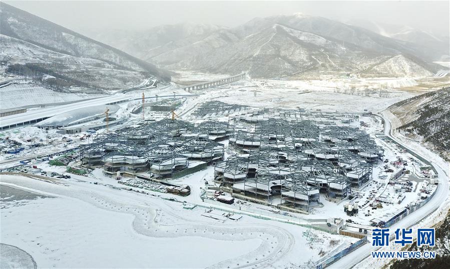 图为京张高铁太子城站(左)和崇礼太子城小镇(无人机拍摄,摄于12月10日)。新华社记者杨世尧摄