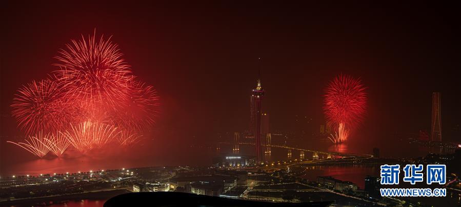12月22日,烟花在澳门上空绽放。当晚,澳门与珠海首次联合举行烟花汇演,庆祝澳门回归祖国20周年。新华社记者吕小炜摄