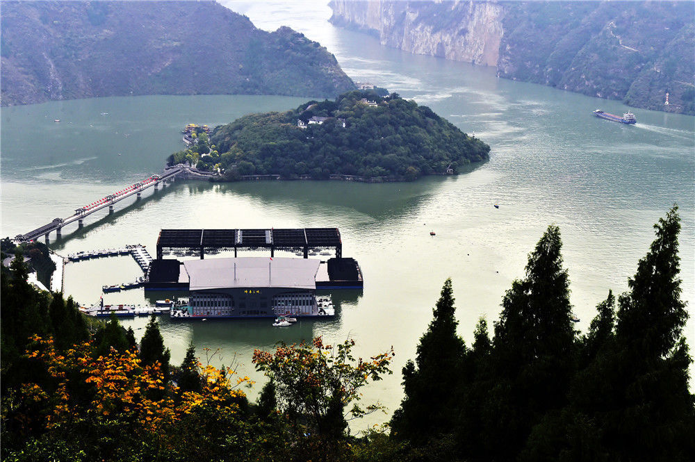 2019年11月2日,重庆,俯瞰三峡蓄水之后的“白帝城孤岛”全貌。