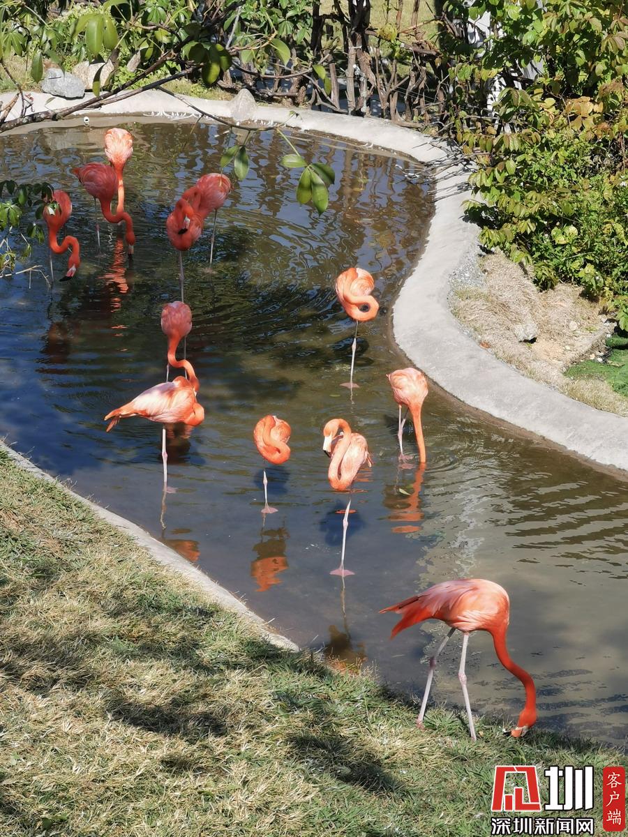 基因库外面有下沉式水塘,一群火烈鸟在这里展示牠们鲜艳的羽毛和精廋的长腿。郑晓鹏摄