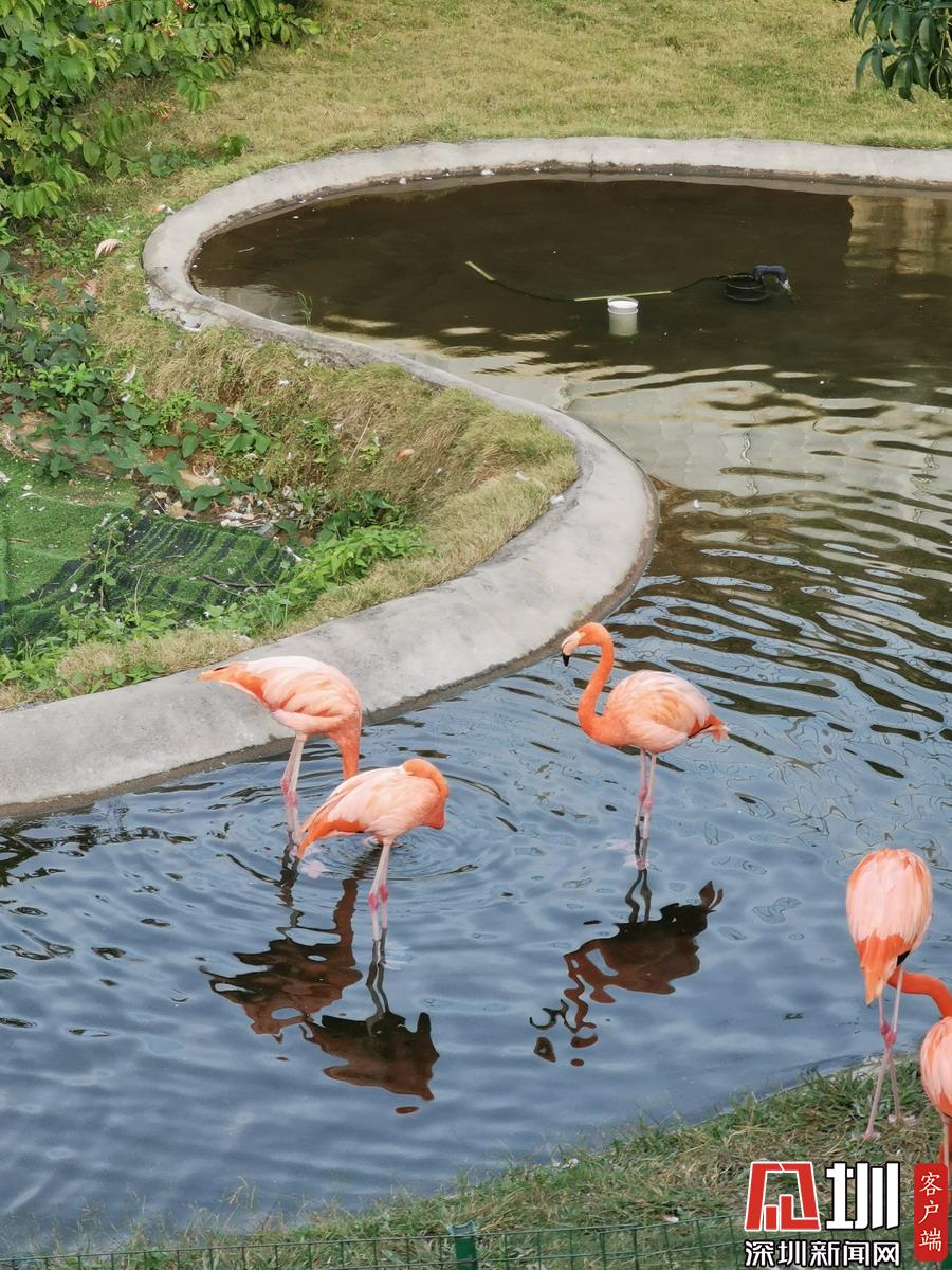 探访深圳国家基因库 火烈鸟湖中悠闲觅食