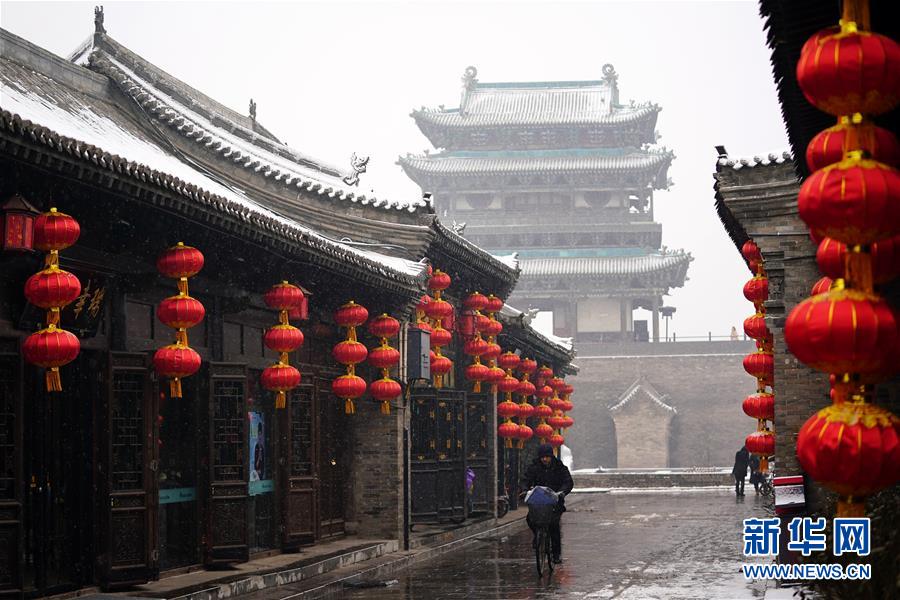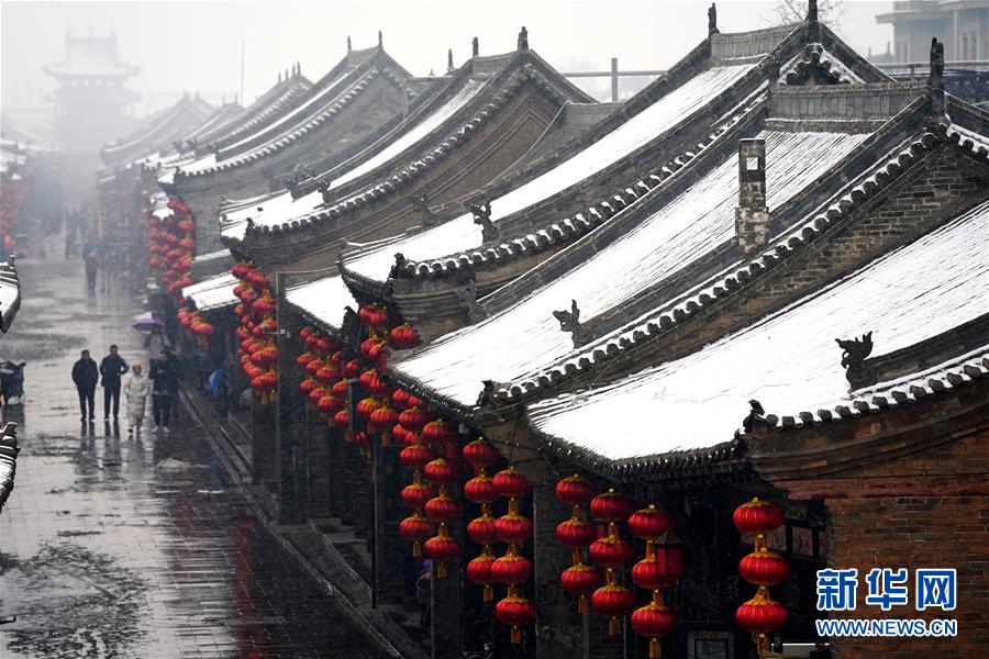 当日,山西省平遥县迎来降雪,雪中的平遥古城银装素裹,美景如画。平遥古城是目前中国保存最完整的古代县级城池之一,1997年被列入世界文化遗产名录。