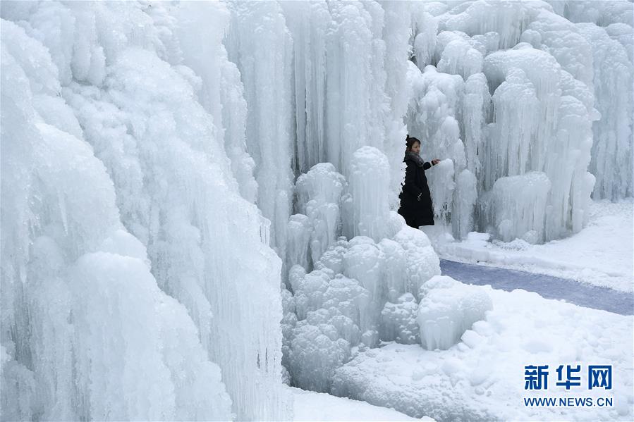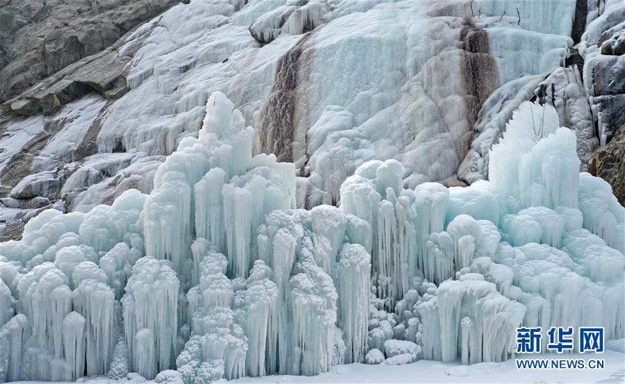 这是1月7日拍摄的贺兰山岩画景区内的冰瀑景观。 新华社记者 王鹏 摄