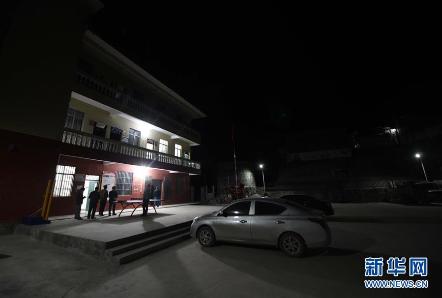 八好村驻村第一书记韦德王和同事在办公楼外商量扶贫相关事宜(2019年12月16日摄)。新华社记者黄孝邦摄