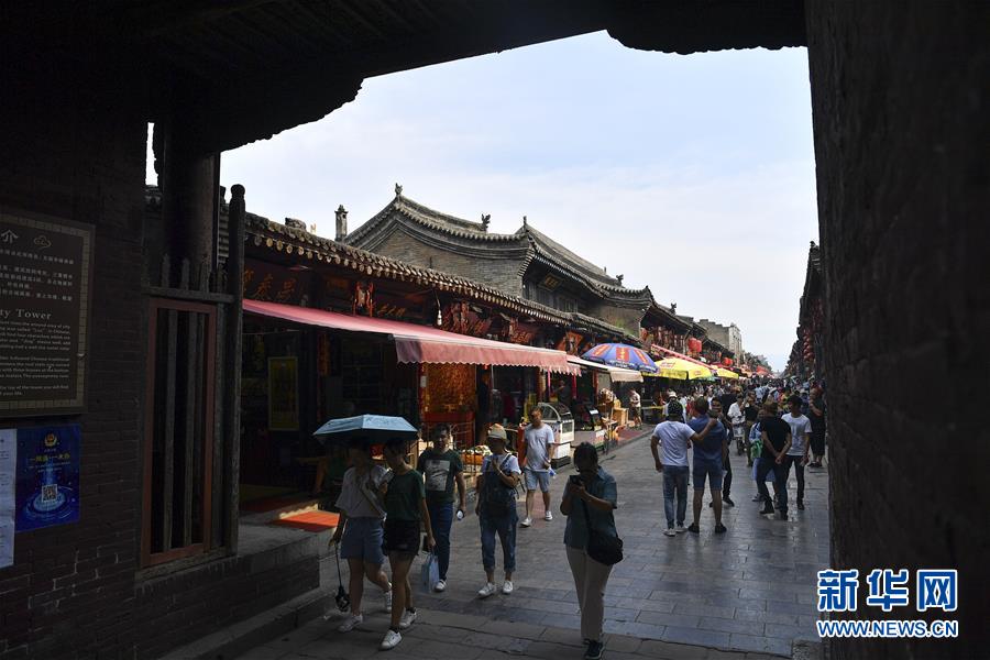游客在山西平遥古城南大街游览(7月19日摄)。