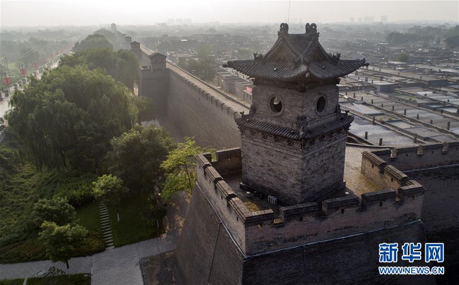 这是7月20日无人机拍摄的平遥城墙上的角楼。