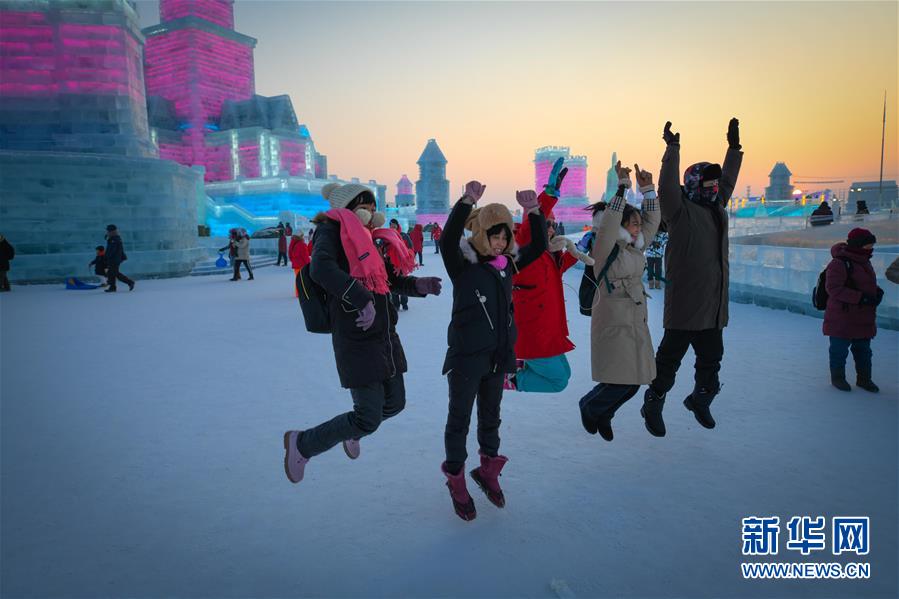 游客在哈尔滨冰雪大世界园区中游玩(1月5日摄)。新华社记者王松摄