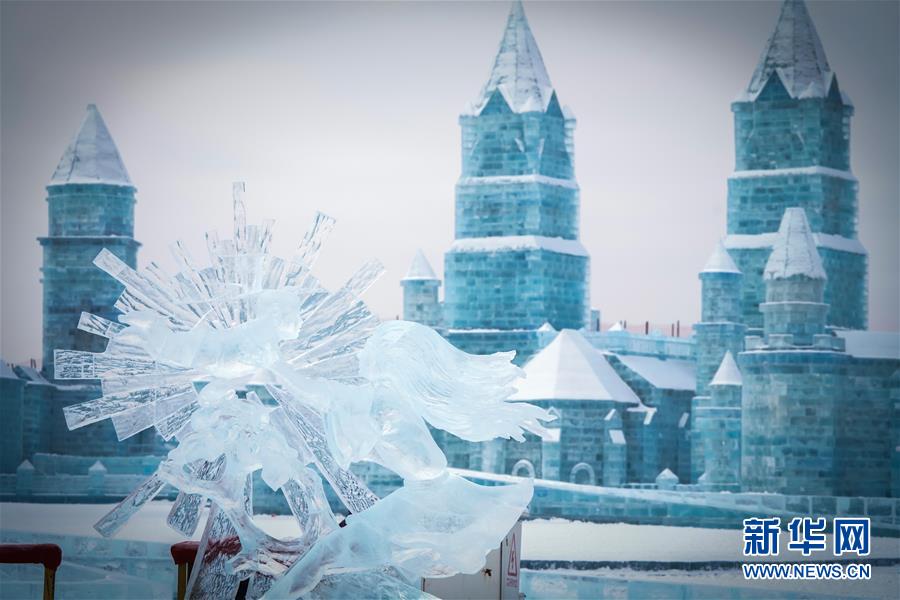 在哈尔滨冰雪大世界内拍摄的冰雕作品(1月8日摄)。新华社记者王松摄