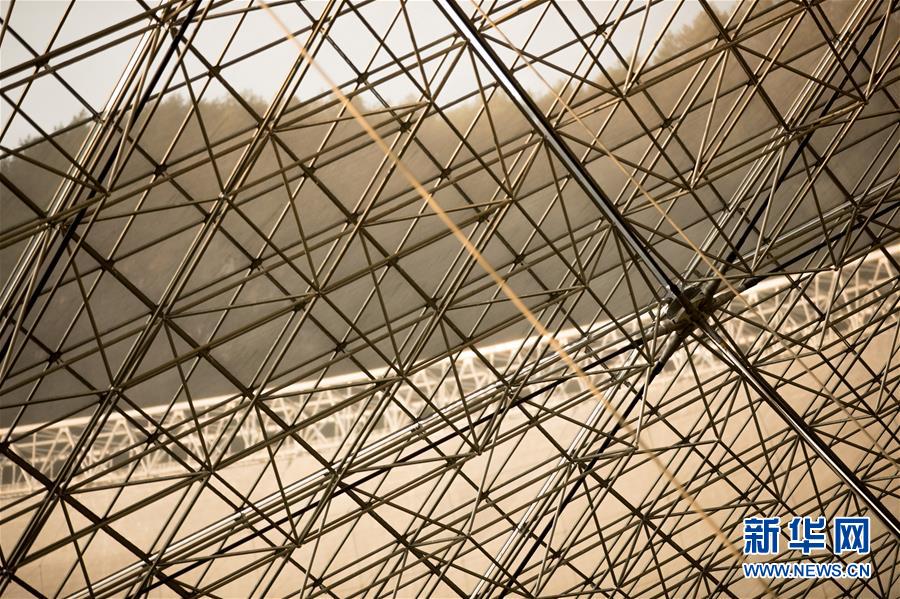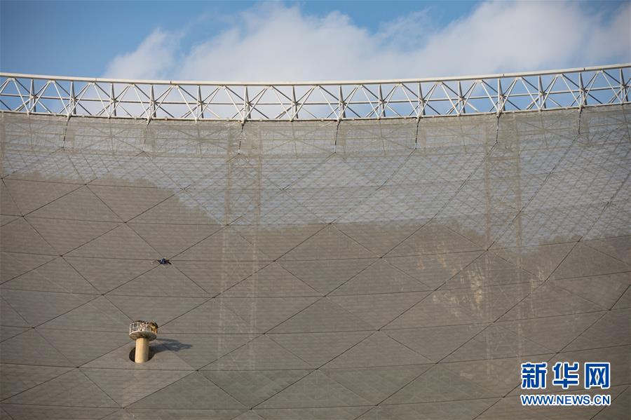 8月28日,工作人员在对FAST反射面板进行检修。新华社记者欧东衢摄