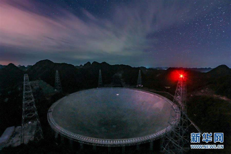 8月27日拍摄的星空下的“中国天眼”。新华社记者欧东衢摄