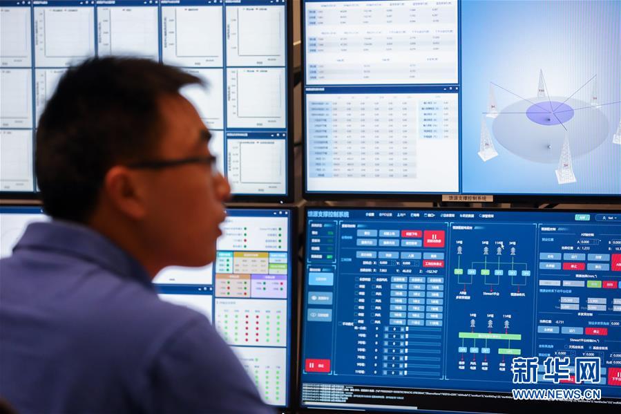 8月30日凌晨,工作人员在“中国天眼”总控室内工作。新华社记者欧东衢摄