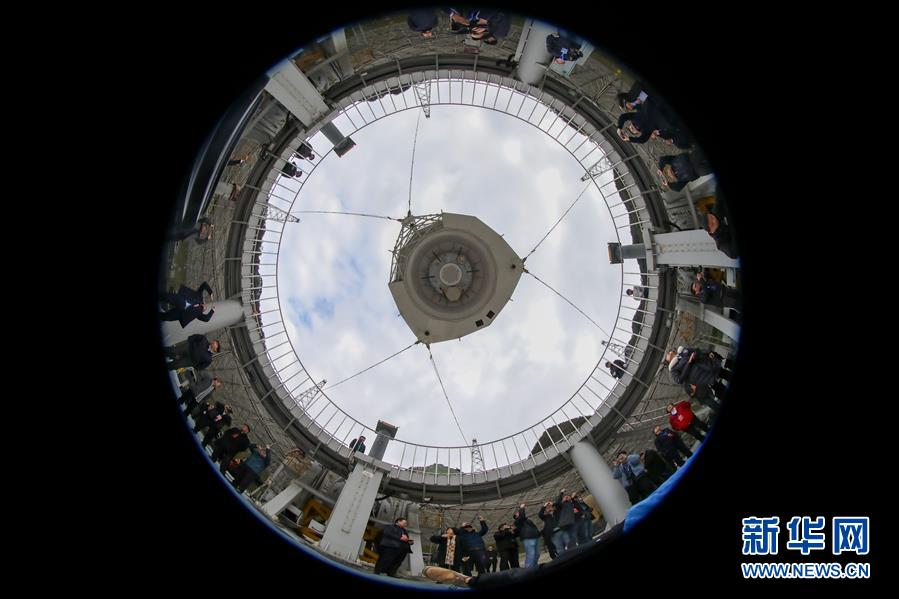 1月11日,专家学者对“中国天眼”进行考察(检修期间拍摄)。新华社记者刘续摄