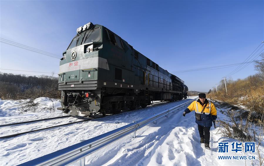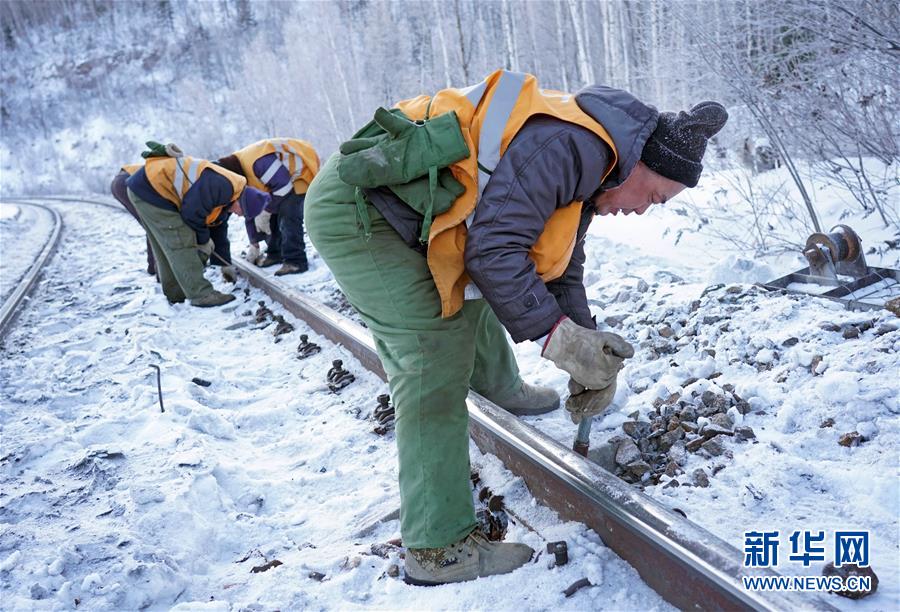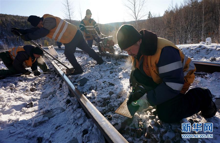 1月8日,西罗奇维修工队工作人员在嫩林线497公里处进行维修作业。新华社记者王毓国摄