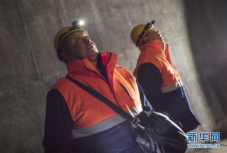 通化通信车间无线工区铁路通信工人观察隧道顶部通信线缆是否有外露情况(1月10日摄)。2020年春运1月10日拉开帷幕。新华社记者许畅摄