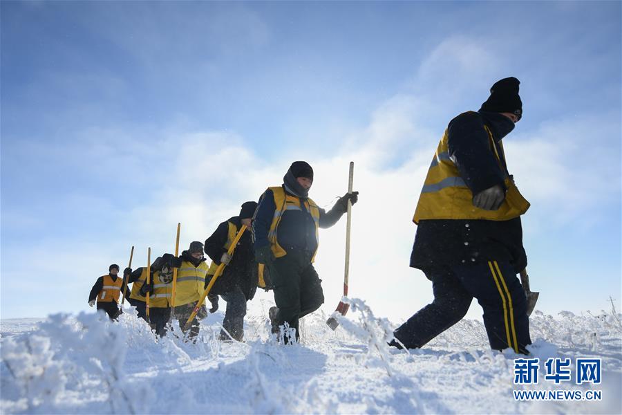 1月13日,白音库伦综合维修车间线路养护职工前往作业点。新华社记者刘磊摄