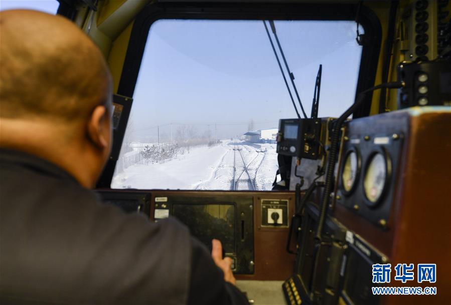 临近送水地点,送水员黄卫东指挥列车前往停靠点(1月17日摄)。新华社记者许畅摄