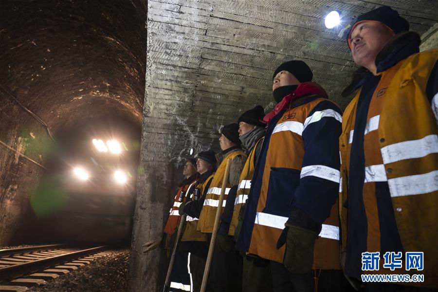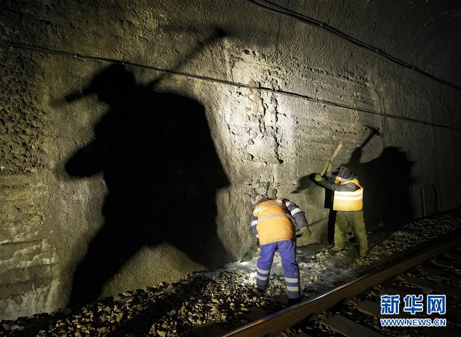 1月6日,在加格达奇工务段西罗奇岭二号隧道,西罗奇维修工队工作人员进行维修作业。新华社记者才扬摄