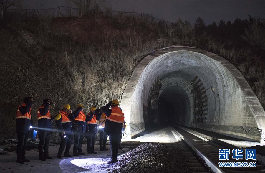 1月7日,西罗奇维修工队工作人员在加格达奇工务段西罗奇岭二号隧道附近进行维修作业。新华社记者才扬摄