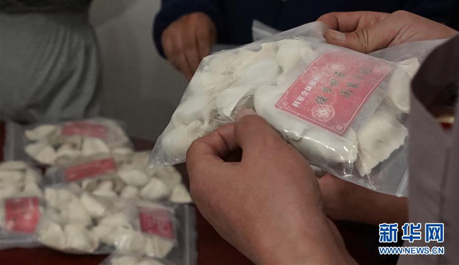 1月6日,在加格达奇工务段西罗奇维修工队住所,西罗奇维修工队工作人员收到加格达奇工务段送来的节日慰问饺子和节日祝福贺卡。新华社记者王毓国摄