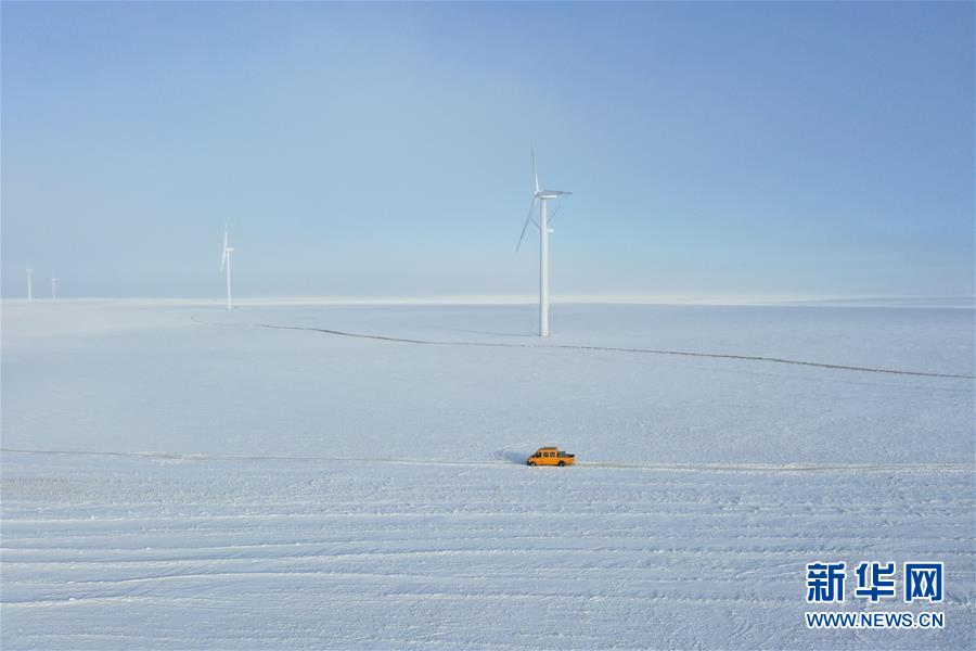 1月13日,白音库伦综合维修车间的职工来到作业点准备工作(无人机照片)。新华社记者刘磊摄