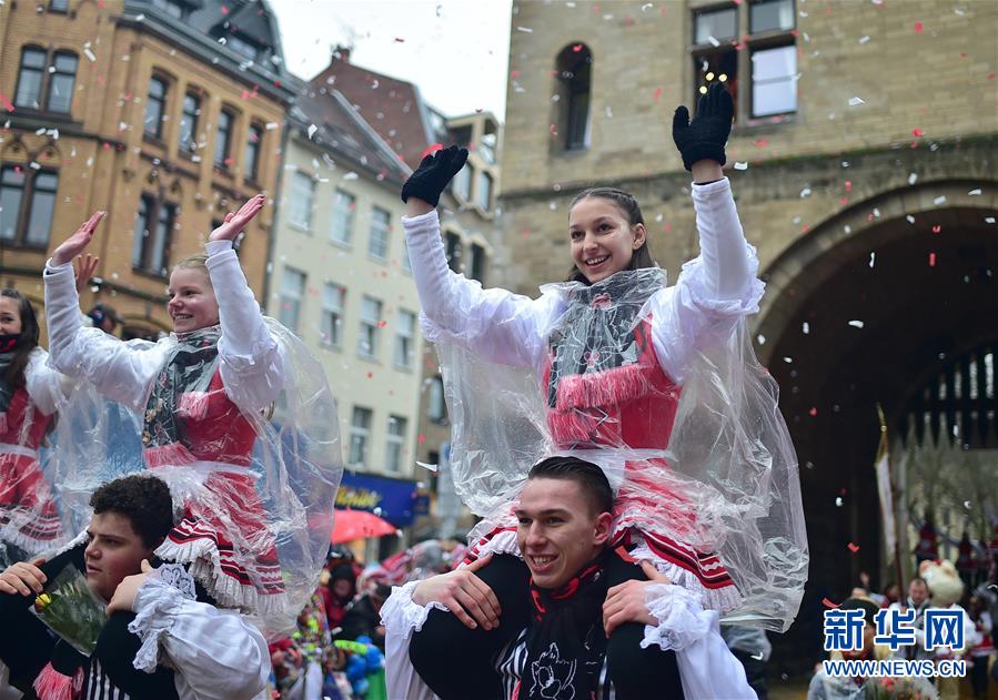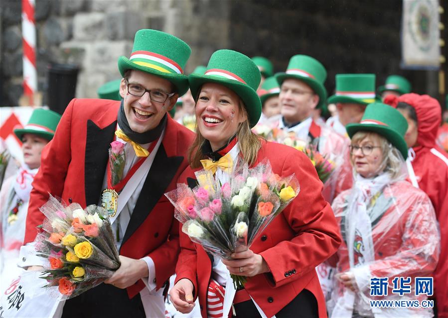 2月24日,在德国科隆,人们参加“玫瑰星期一”大游行。新华社记者 逯阳 摄