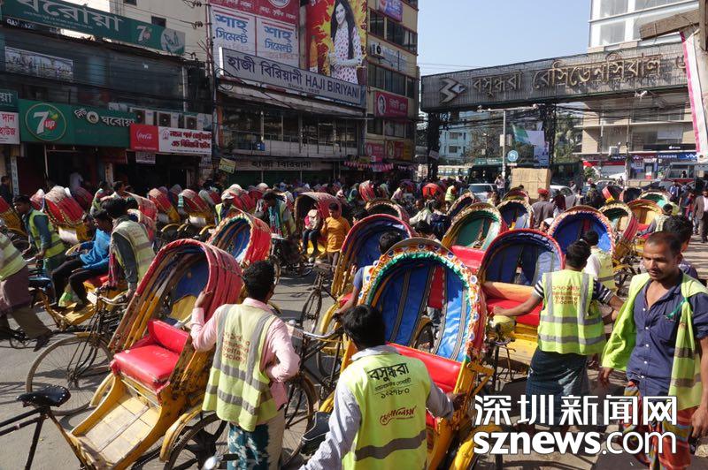 首都达卡汇聚了1100多万人,生存与忙碌是这个城市的主调,鲜艳的色彩,比如花里胡哨的三轮车和妇女大红大绿的服装只是其装扮而已。李仁奇摄