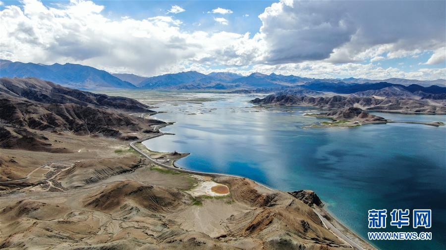 普姆雍错湖紧挨着公路,是自驾游的理想目的地(9月19日无人机拍摄)。新华社记者晋美多吉摄