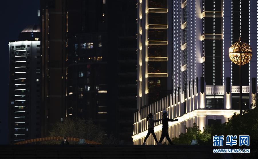 4月1日傍晚,市民在江堤上健身。新华社记者费茂华摄