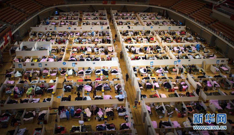 2月17日拍摄的武汉体育中心方舱医院。 新华社记者肖艺九摄