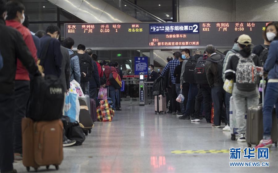 4月8日凌晨,乘客在武昌火车站排队等候K81次列车。 新华社记者 费茂华 摄