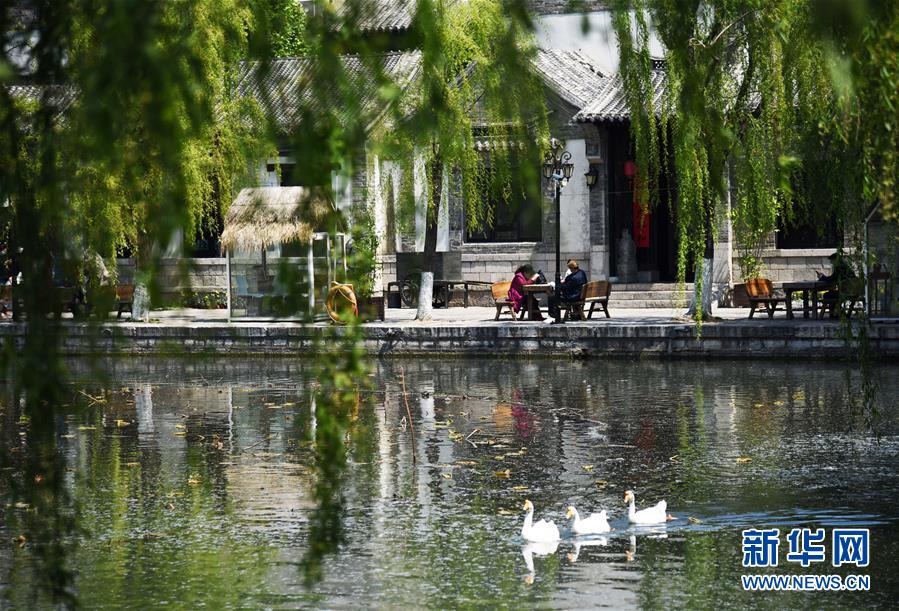 4月13日,游客在济南百花洲历史文化街区休闲。新华社记者王凯摄