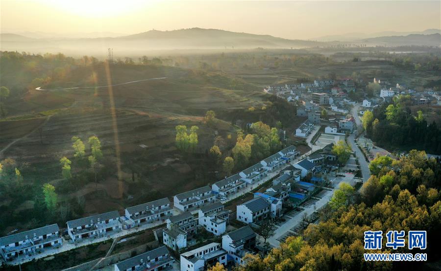 4月13日清晨时分拍摄的洛南县城(无人机照片)。新华社记者陶明摄