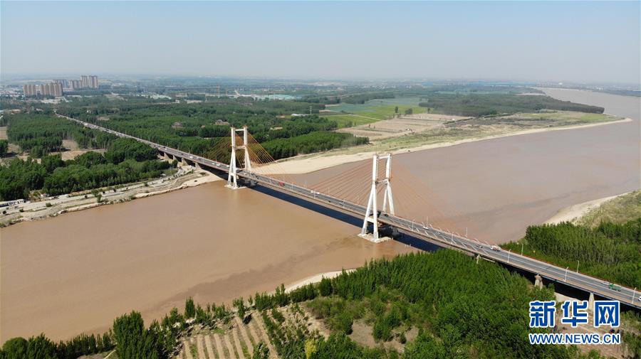 4月24日在山东济南拍摄的黄河景色(无人机照片)。春暖花开的时节,济南黄河两岸春风送绿,大河、绿植与城市构成了一幅春的画卷。新华社记者王凯摄