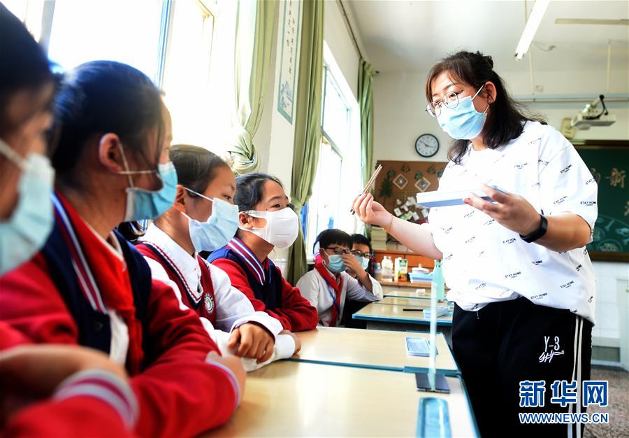 4月30日,诸暨市暨阳小学五年级4班班主任宣明霞在主题班会上向学生讲解家庭用餐使用公筷公勺的重要性。当日,浙江省诸暨市暨阳小学五年级4班开展“公筷公勺新家风”主题班会活动,通过海报设计、情景剧表演等强化孩子们使用公筷公勺的意识,倡导文明用餐。新华社记者 韩传号 摄