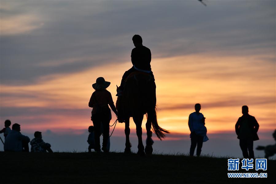 5月3日,游客在贵州省龙里大草原景区骑马观光。“五一”小长假期间,贵州省黔南布依族苗族自治州龙里大草原景区天气怡人,高山草原风光吸引游客前来游玩。新华社记者 杨文斌 摄