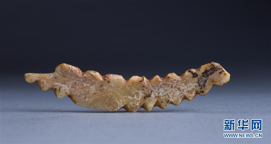 这是双槐树遗址出土的“家蚕牙雕”。新华社发