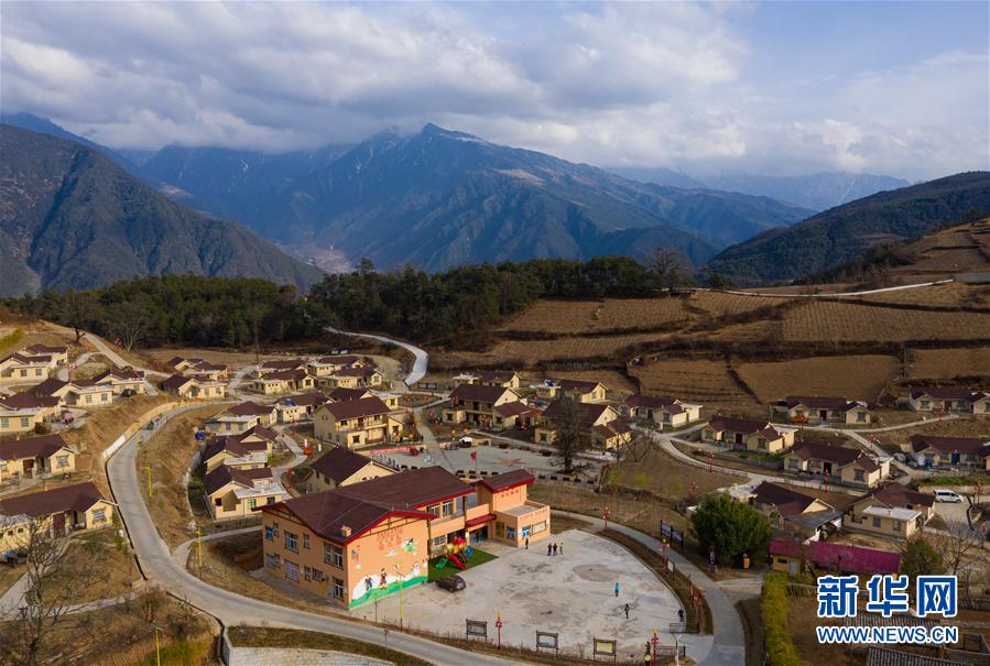 这是四川省冕宁县彝海镇彝海村彝海结盟新寨(2019年3月11日摄,无人机照片)。新华社记者江宏景摄