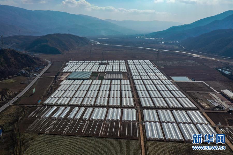 这是位于昭觉县四开乡好谷村的涪昭现代农业示范园区(2019年12月10日摄,无人机照片)。新华社记者王曦摄