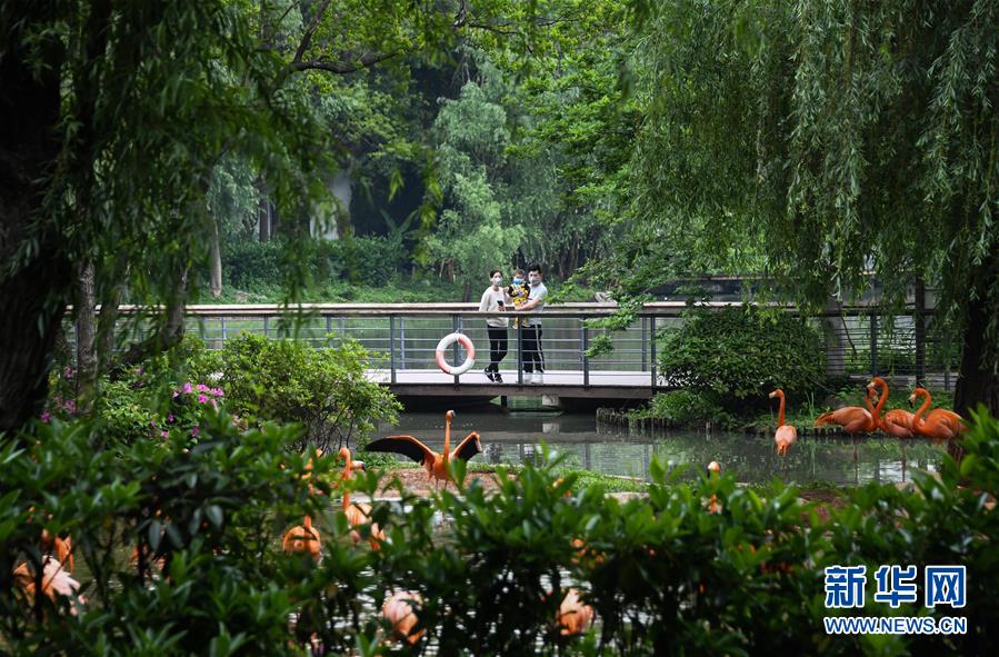 游客在武汉动物园观看火烈鸟(4月22日摄)。 新华社记者 程敏 摄