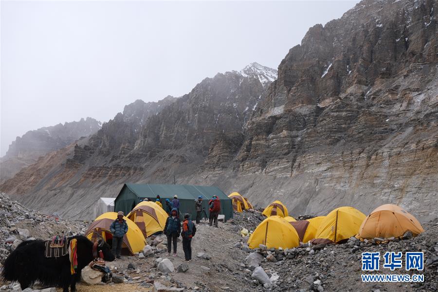 这是海拔5800米的珠峰过渡营地(5月8日摄)。珠峰过渡营地海拔5800米,是连接前进营地和珠峰大本营的重要一站。登山爱好者从大本营徒步大约四个小时就能抵达过渡营地。此段路程乱石林立,同时也能欣赏壮美的冰川。新华社记者孙非摄
