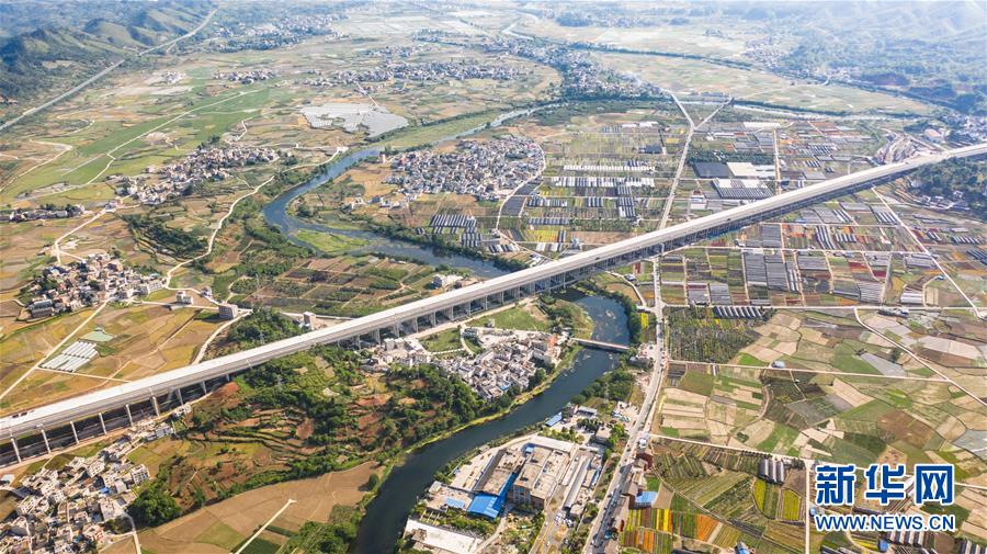 都安高速改扩建路段的惠水特大桥(无人机照片,5月9日摄)。 新华社记者 陶亮 摄