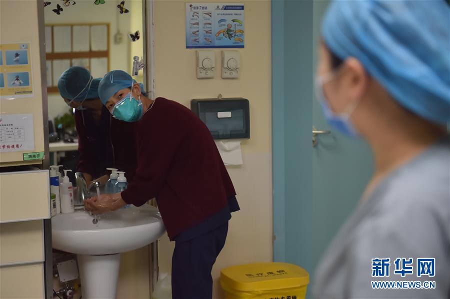 5月11日,在北京地坛医院感染二科护士站,一名护士在洗手。北京地坛医院是北京市收治新冠肺炎患者的定点医院之一,医院的医护人员一直奋战在抗击疫情的一线。在国际护士节前夕,记者前往北京地坛医院,记录下抗疫一线护士的日常工作状态。新华社记者彭子洋摄